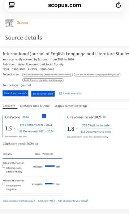 في مجلة International Journal of English Language and Literature Studies، المصنفة ضمن الربع الأول Q1 في مستوعبات سكوبس